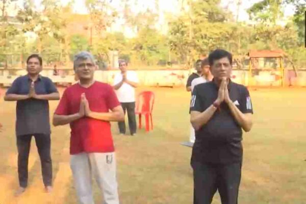 Mumbai, Maharashtra – Union Minister and BJP candidate from Mumbai North, Piyush Goyal, was seen participating in a Yoga session at Poinsur…