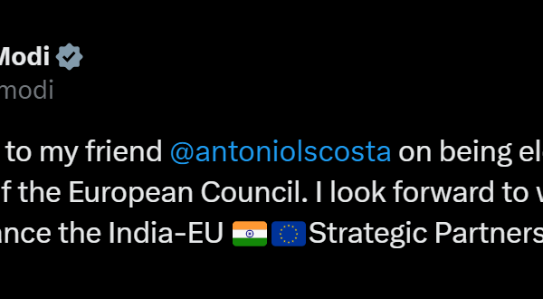Prime Minister Narendra Modi has conveyed his congratulations to António Costa on assuming the presidency of the European Council. In…
