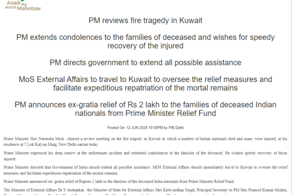 In response to the tragic fire incident in Kuwait that claimed several lives and left many injured, Indian Prime Minister…