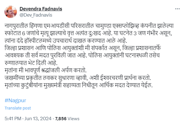 Maharashtra – In a tragic incident, an explosion at the Chamunda Explosive Company in the Hingana MIDC area of Nagpur claimed…