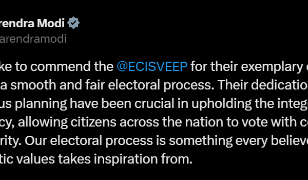 Prime Minister Narendra Modi has publicly acknowledged the Election Commission of India (@ECISVEEP) for its commendable efforts in ensuring a…