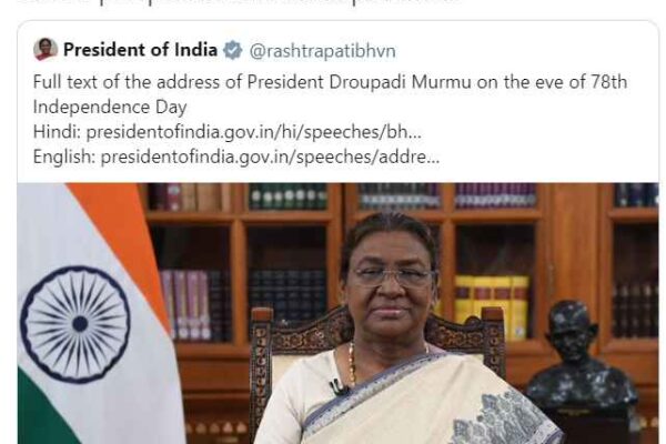 Prime Minister Narendra Modi has expressed his admiration for President Droupadi Murmu’s address on the eve of India’s 78th Independence…