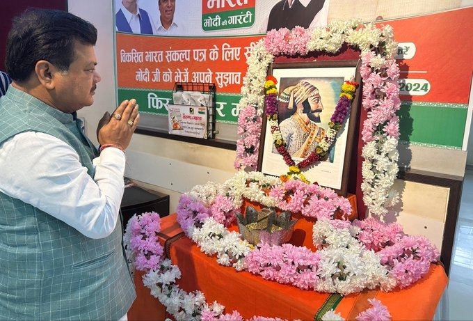 Dadar, Mumbai – In a grand ceremony held at the Vasant Smriti BJP office in Dadar, Legislative Council Group Leader, A. Pravin Darekar Ji, paid his respects to the statue of Chhatrapati Shivaji Maharaj. The event marked the 350th coronation day of the revered Maratha warrior king, Chhatrapati Shivaji Maharaj.
