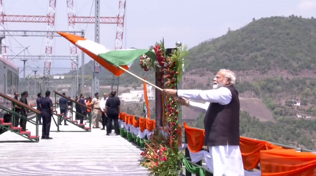 Jammu & Kashmir — Prime Minister Narendra Modi today inaugurated the Chenab Bridge, the world’s highest railway arch bridge, marking a historic milestone in India’s infrastructure development. The bridge, located in the Reasi district of Jammu and Kashmir, is a critical link in the Udhampur-Srinagar-Baramulla Rail Link (USBRL) project.