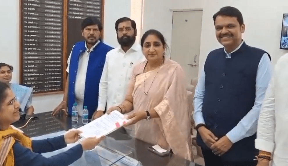 MAHARASHTRA – In a significant political development, Sunetra Pawar, wife of Maharashtra Deputy Chief Minister Ajit Pawar, filed her nomination papers today at the Divisional Commissioner’s office. She is the Nationalist Congress Party (NCP) candidate from Baramati, a key constituency in the state.